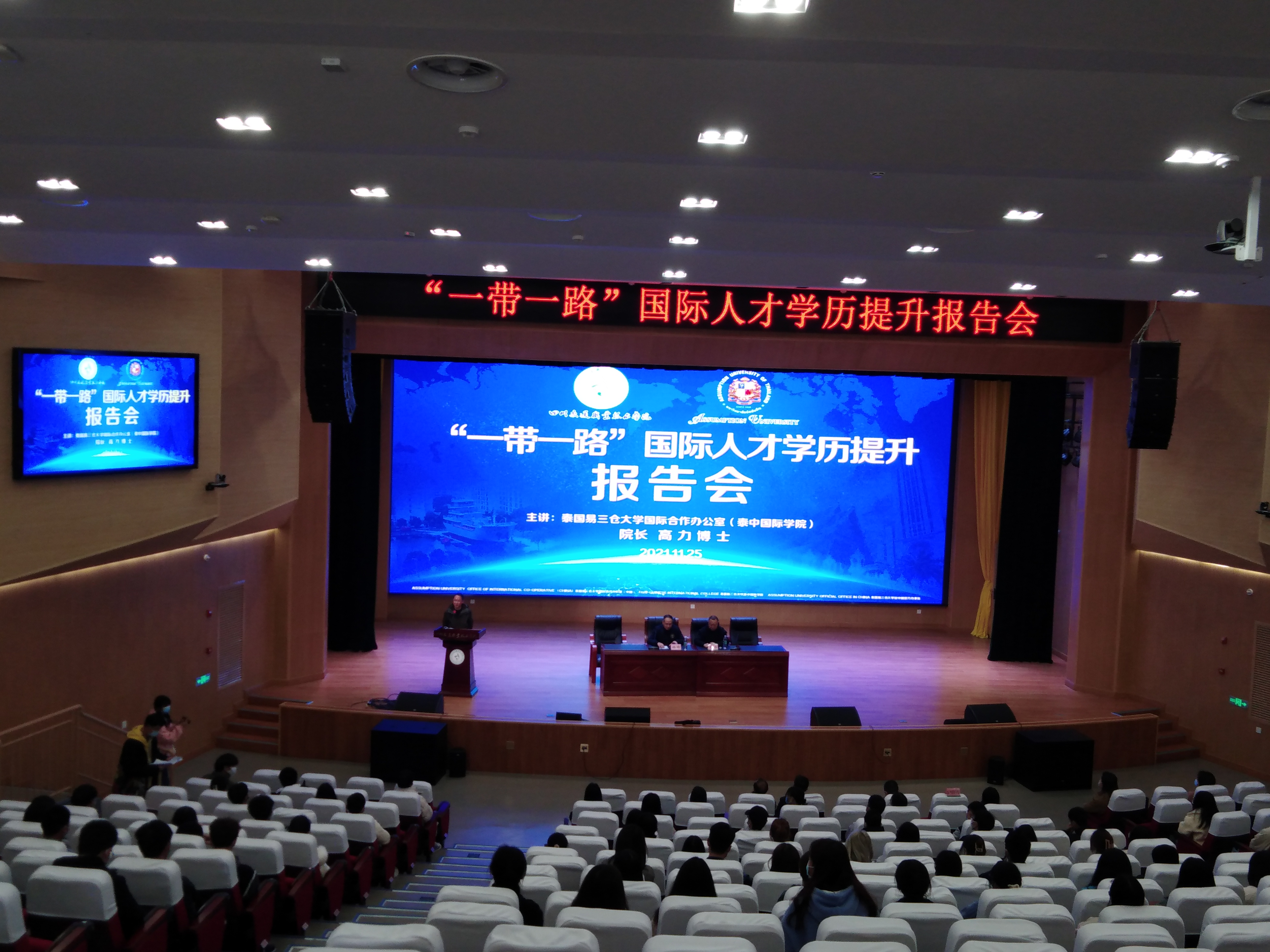 期间,院长高力博士为我校艺术设计系、交通运输与经济管理系共计400余名师生做了“一带一路国际人才学历提升”的精彩报告,为高职院校学生学历提升指明了一条国际化的新途经。同时,副院长徐锋先生也为参会师生详细介绍了泰国易三仓大学的办学基础、专业培养、校园设施、学术氛围以及国际化质量体系等,为我校师生呈现了一个多学科、精专业、重服务、利社会的高质量教育机构形象。