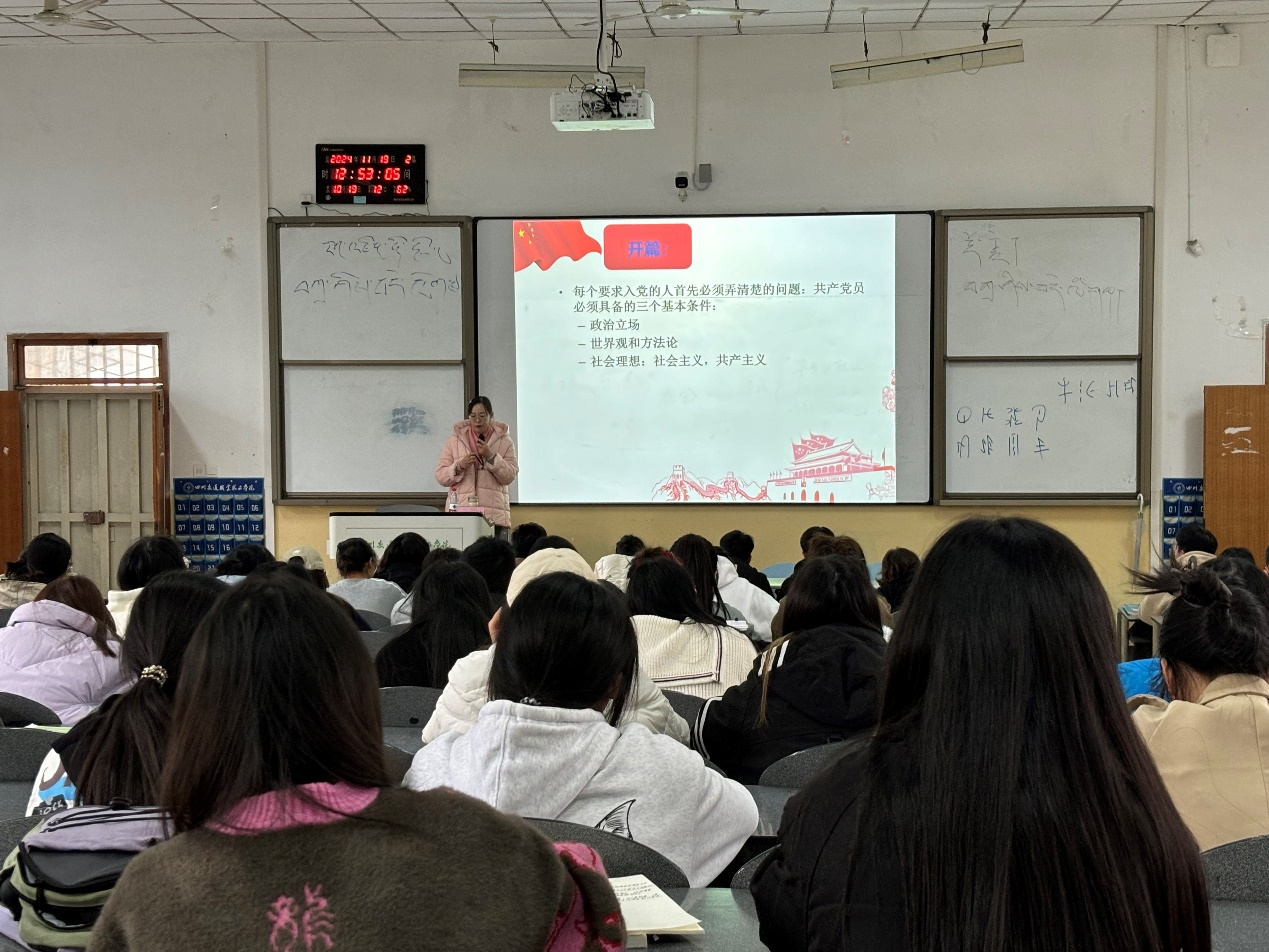 唐红英老师以“端正入党动机,以实际行动入党”开展授课,深入浅出地讲解了入党动机地核心要义,从对党的光辉历史和伟大成就的深情回顾,引导学员们对自己的入党动机进行深入思考。