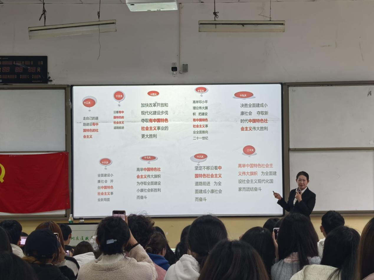 系党总支副书记王雪在课堂上深入阐述“中国式现代化”的丰富内涵,它既有世界现代化的一般性特征,更具备基于中国国情与文化底蕴的独特标识,并通过与西方现代化模式的对比分析,进一步凸显出中国式现代化的优越性与强大生命力。