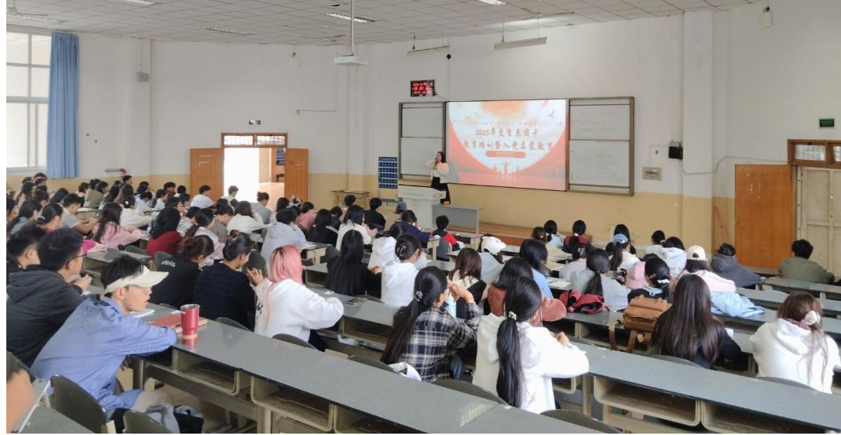 系部各班团干部以及部分团员、共计200余人参与此次入党启蒙教育活动。系党总支书记苏峰、团总支书记杨金兰、学生党支部书记邹艳老师以及五位系团总支·学生会学生干部作为此次培训主讲人为同学们开展入党启蒙教育暨团干培训。