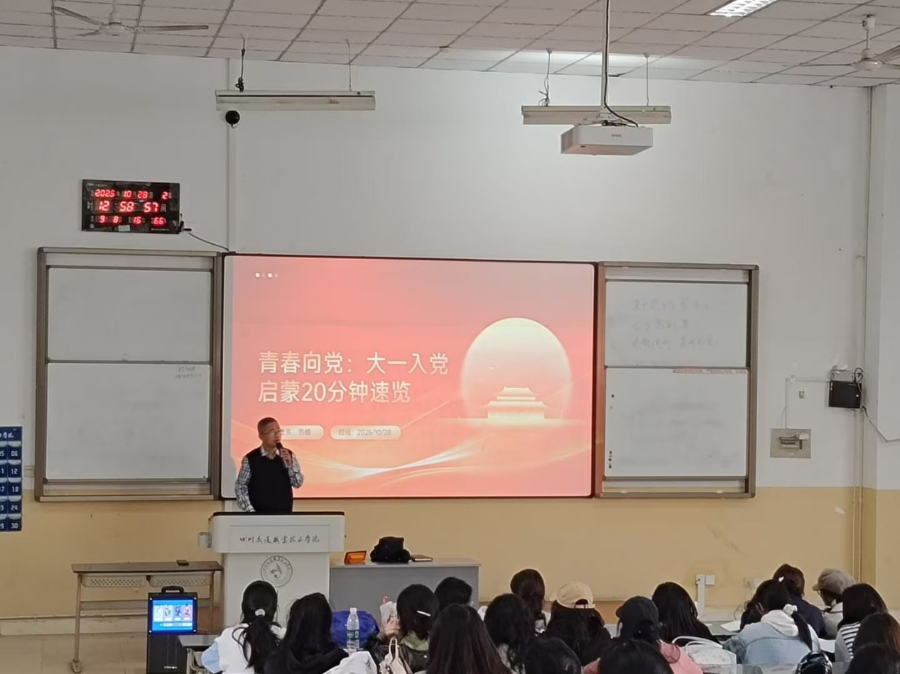 系党总支书记苏峰老师以“青春向党”为题,在宣讲中指出:思想是行动的先导,理论是实践的指南。百余年风雨兼程,我们党之所以能历经沧桑而风华正茂、饱经磨难而生生不息,根本在于始终坚持把马克思主义基本原理同中国具体实际相结合、同中华优秀传统文化相结合,形成了一脉相承又与时俱进的科学理论体系。其中,党的创新理论作为凝聚人心、引领方向、推动发展的精神旗帜,为新时代中国特色社会主义事业提供了根本遵循和强大动力。