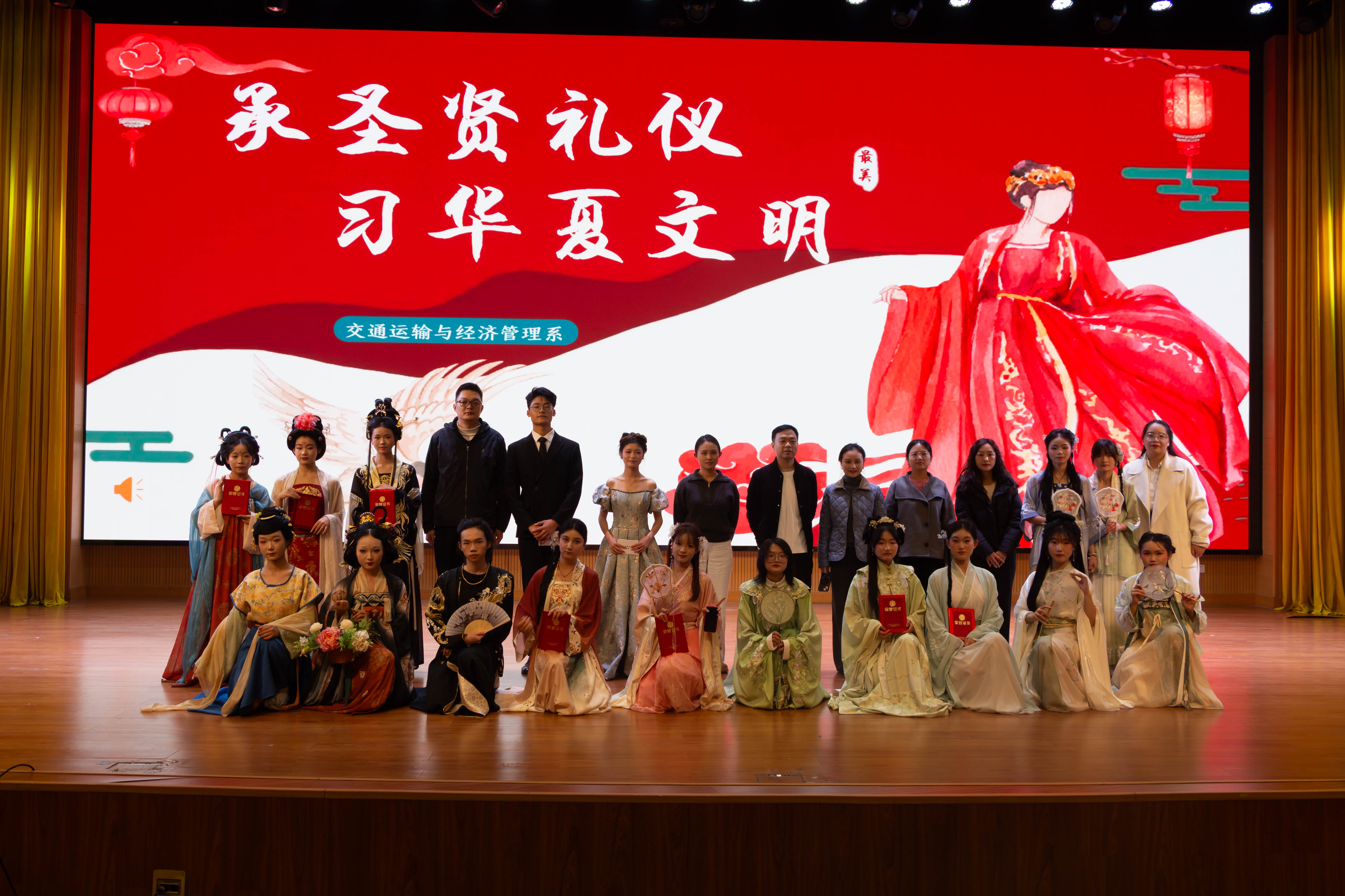 11月25日,交通运输与经济管理系主办的汉服礼仪决赛在我院学术报告厅正式落下帷幕。这场以“华夏衣冠”为核心的赛事,汇聚多院系选手同台竞技,将千年服饰之美与传统礼仪之韵相融合,为现场观众带来一场跨越古今的文化盛宴。
